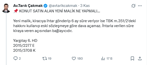 - Ancak halk arasında yeni malik, eski sözleşmeyi incelemeden direkt ihtar çekip, 6 aydan önce dava açma hakkını kaybetmektedir.
