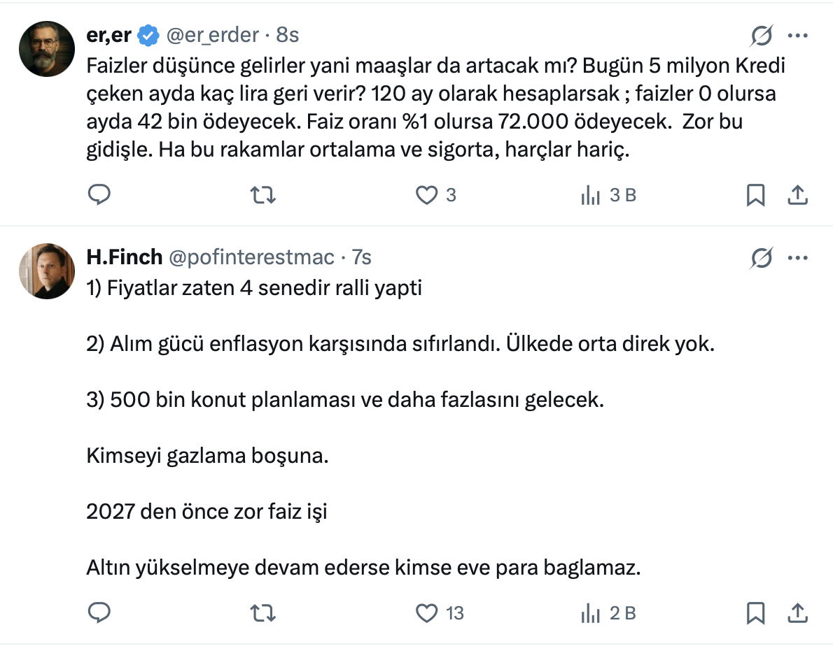 Pek çok kişi altın bozdurup ev almanın mantıklı olup olmadığı ile ilgili araştırmalar yaparken, Toprak Yatırımcısı ve talepbul'un Yönetim Kurulu Başkanı Arif Güdül resmi X hesabı https://x.com/arifgudulcom üzerinden konu ile ilgili bir paylaşım yaptı.