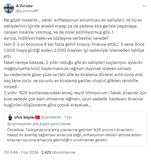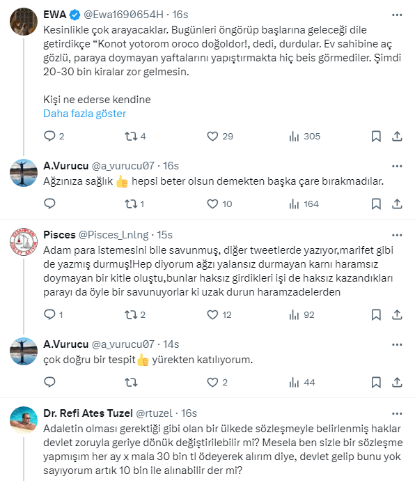 İşte ev sahibi mağduru A.Vurucu'nun sosyal medya hesabı X'ten yaptığı o paylaşım ve gelen yorumlar...