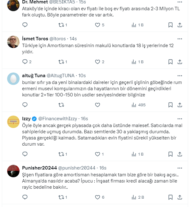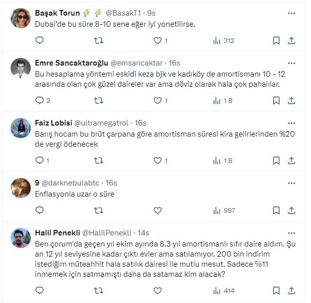 Kiralardaki astronomik artışlar sonrasında İstanbul'un birçok semtinde amortisman süresi, yani kirasıyla evi alma süresi 15 yıl ve altına indi. Bazı semtler: