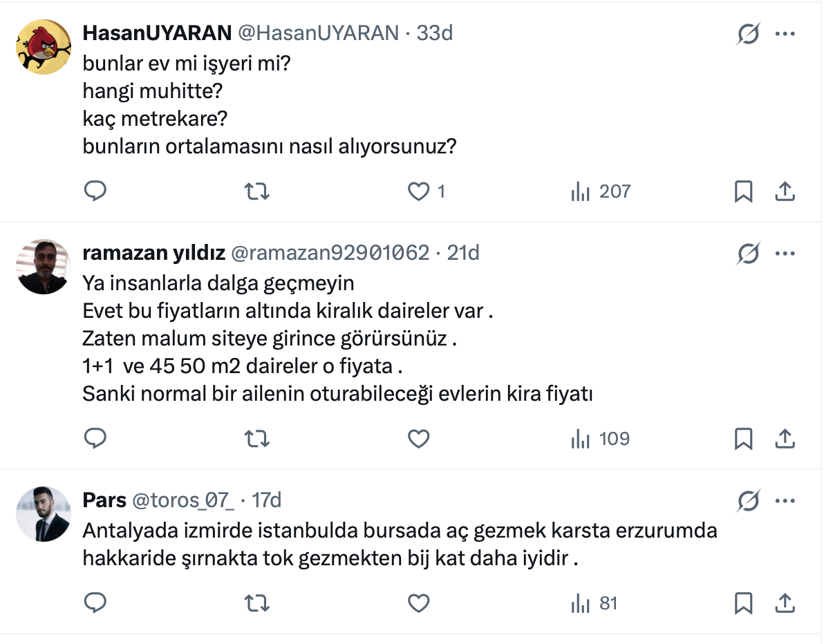 Demek ki bu ortalamaların da altında kiralar var