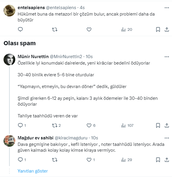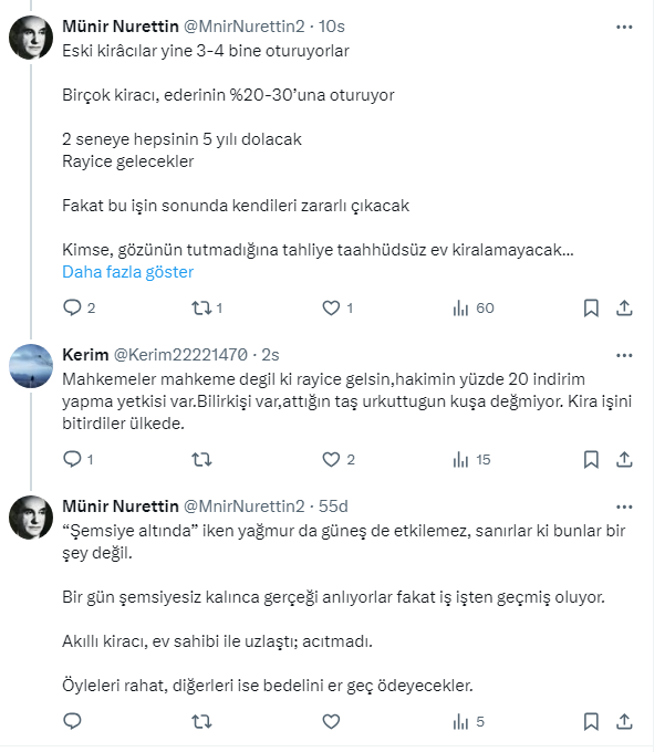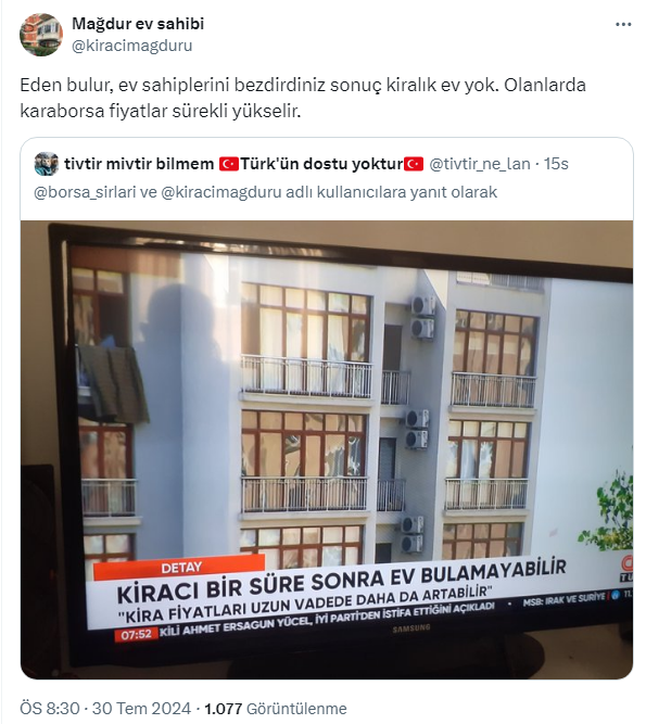 Bu durum ise kiralık konut piyasasında krize neden oldu. Mağdur ev sahibi sosyal medya hesabı X'ten konuyla ilgili bir paylaşım yaparak kiralık ev bulamayanlar için ''eden bulur'' yorumunu yaptı. Mağdur ev sahibi ev sahiplerinin bu süreçte resmen bezdiğini söyleyerek isyan etti. İşte o paylaşım ve gelen yorumlar...