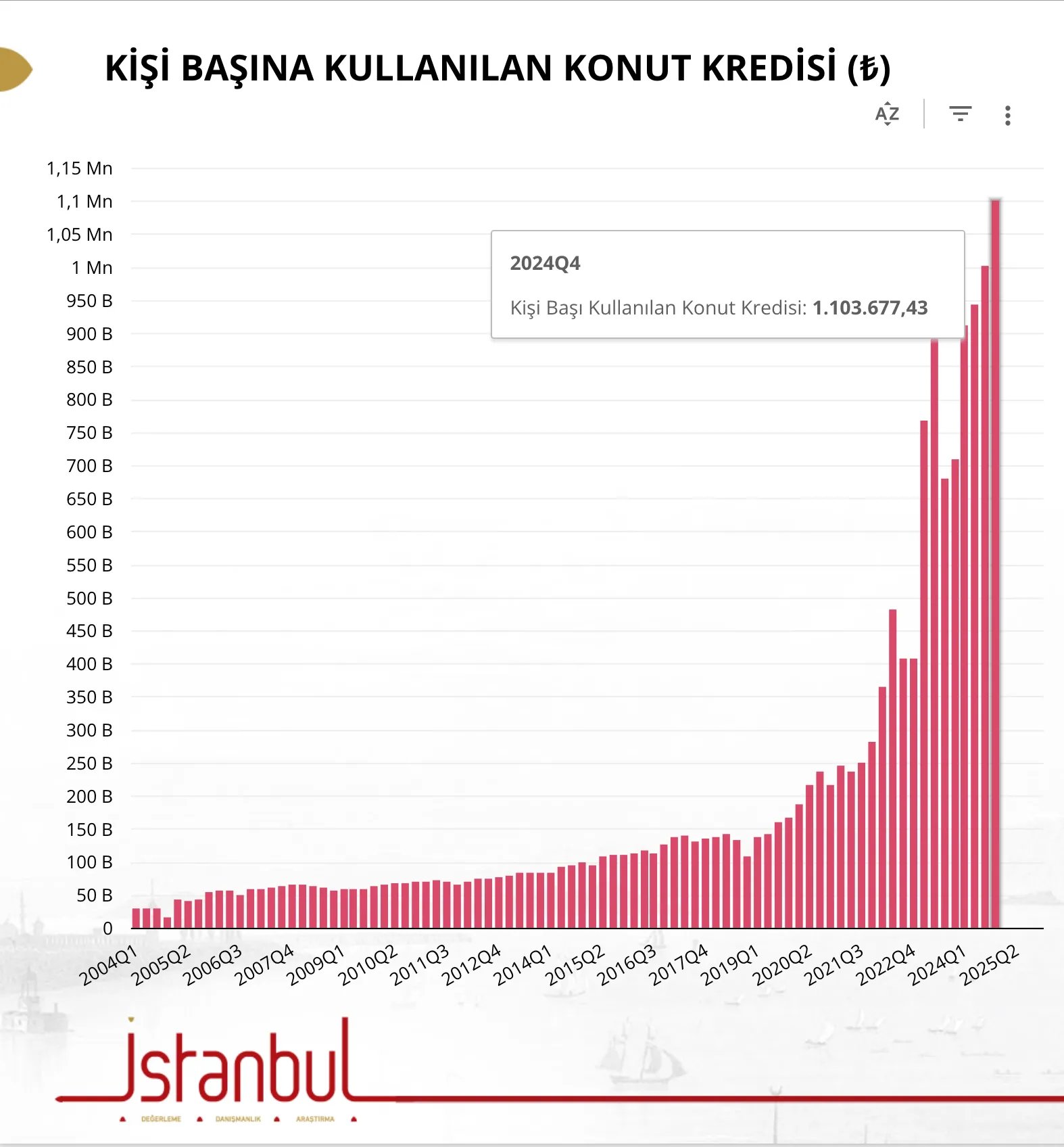 Şehir Plancısı ve Gayrimenkul Değerleme Uzmanı Celal Erdoğdu yaptığı paylaşımda kişi başı kullanılan konut kredisinin 1,1 milyon TL olduğunu söyledi.