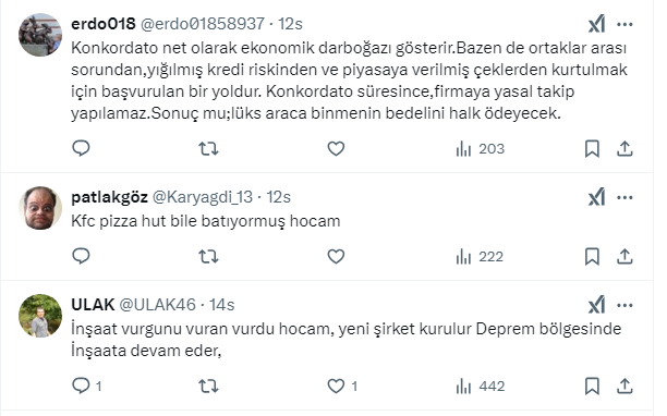 Peki vatandaş konkordatolar ile ilgili neler söyledi? İşte Şenol Babuşcu'nun paylaşımına gelen yorumlar...
