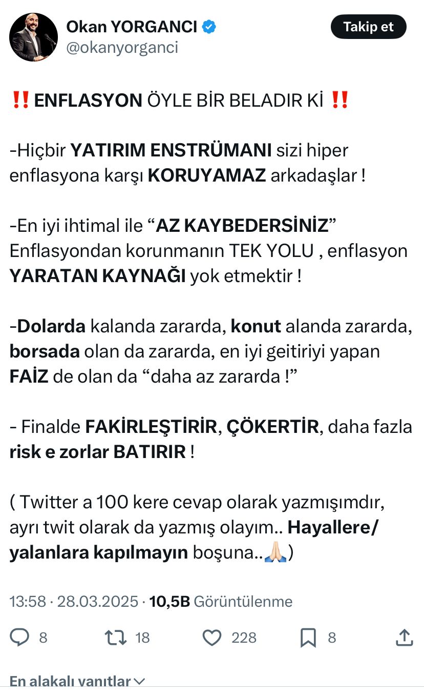 -Hiçbir YATIRIM ENSTRÜMANI sizi hiper enflasyona karşı KORUYAMAZ arkadaşlar !