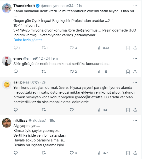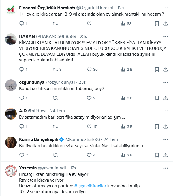 Öte yandan evini satanların paralarını mecduata koydunun da altını çizdi. Kireçci tüm bu gelişmeler olurken, Emlak Konut'un son dakika müjdesi olan 'Gayrimenkul Sertifikası'nın hayata geçtiğini açıkladı.