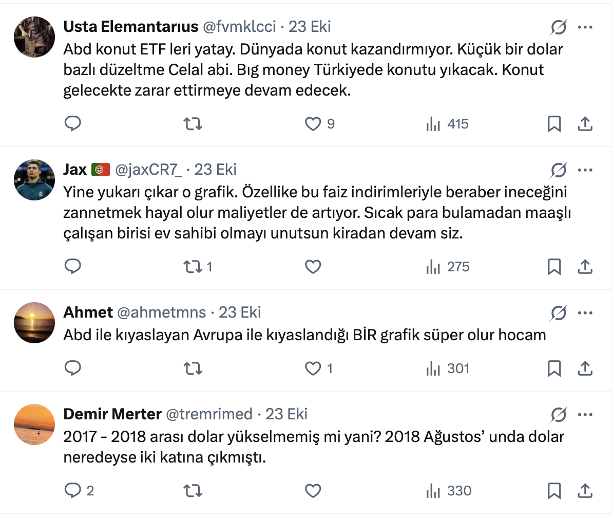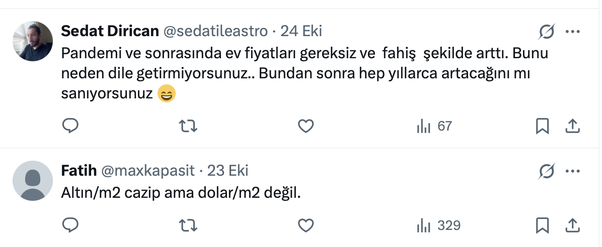 Konut fiyatları gündemden düşmezken Şehir Plancısı ve Gayrimenkul Değerleme Uzmanı Celal Erdoğdu da resmi X hesabı https://twitter.com/CelalErdogdu üzerinden konut fiyatları ile ilgili bir paylaşım yaptı.