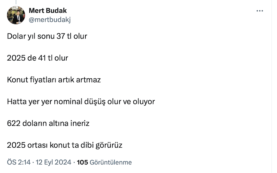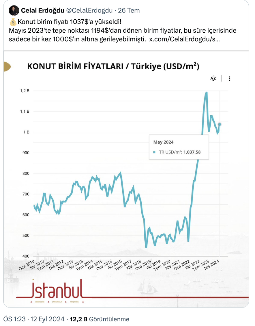 Şehir Plancısı ve Gayrimenkul Değerleme Uzmanı Celal Erdoğdu resmi X hesabı https://twitter.com/CelalErdogdu üzerinden gündemden düşmeyen konut fiyatları ile ilgili çok önemli bir paylaşım yaptı.