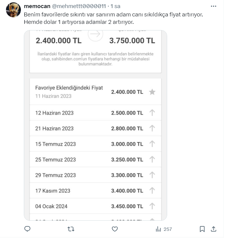 Gayrimenkul Değerleme Uzmanı Dr. Ahmet Büyükduman, https://twitter.com/AhmetBuyukduman resmi sosyal medya hesabından konut fiyatları ile ilgili bir paylaşım yaptı.