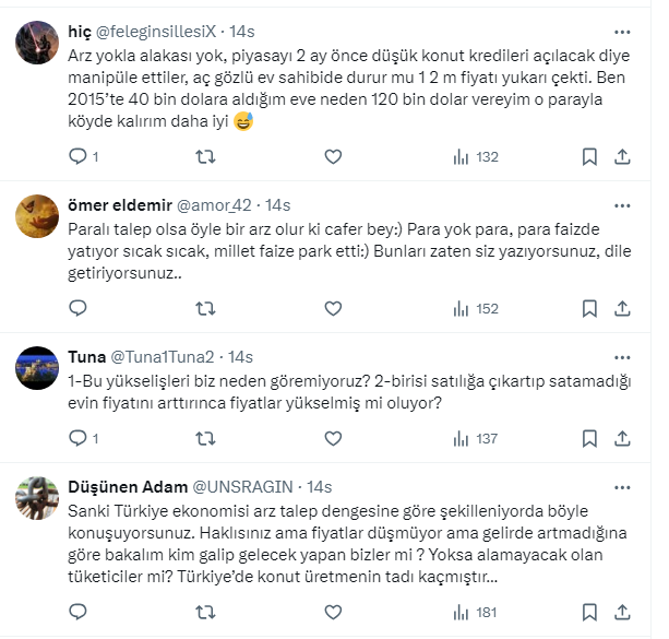 Peki vatandaşlar konut fiyatlarıyla ilgili neler söyledi? İşte o paylaşıma gelen yorumlar..