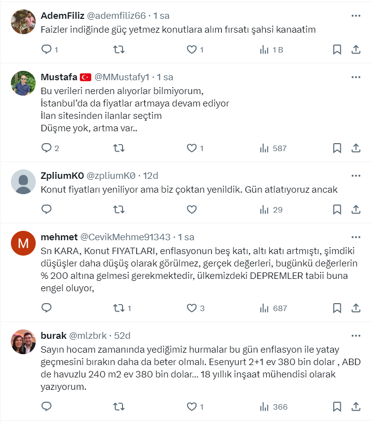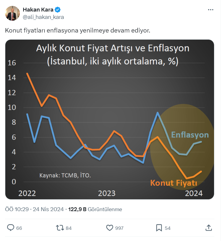 İktisatçı akademisyen, Bilkent Üniversitesi Öğretim Üyesi, TCMB eski başekonomisti Prof. Dr. Ali Hakan Kara, resmi X hesabı https://twitter.com/ali_hakan_kara üzerinden konut fiyat artışları ile ilgili bir paylaşım yaptı.