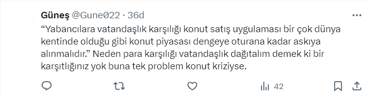 -Yabancılara vatandaşlık karşılığı konut satış uygulaması bir çok dünya kentinde olduğu gibi konut piyasası dengeye oturana kadar askıya alınmalıdır.