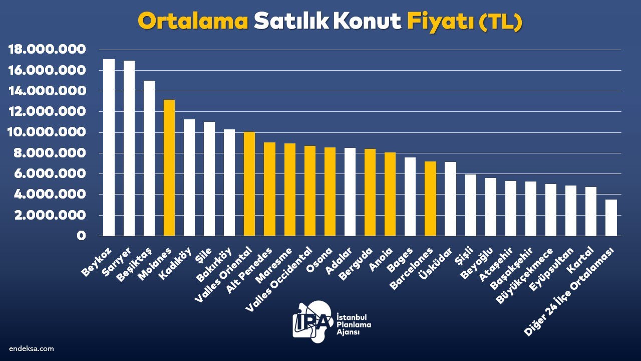 - Beykoz, Sarıyer ve Beşiktaş’taki ortalama satılık konut fiyatları Barcelona’nın tüm bölgelerinden daha pahalı oldu.