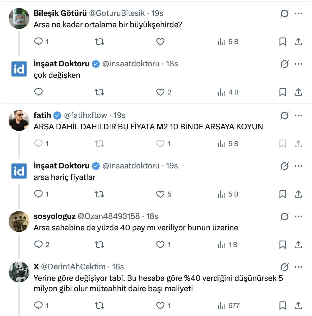 İnşaat maliyetleri ile ilgili detaylar pek çok kişi tarafından merak edilirken, emlak, inşaat ve konut sektörü ile ilgili yaptığı paylaşımlarla dikkat çeken 70,7 bin bin takipçili İnşaat Doktoru resmi X hesabı https://twitter.com/insaatdr üzerinden konut inşaat maliyetlerini paylaştı.