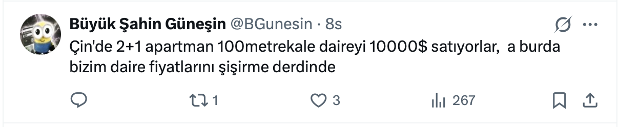 Söz konusu paylaşıma göre 80 metrekarelik bir dairenin maliyeti 2 milyon TL olarak açıklandı