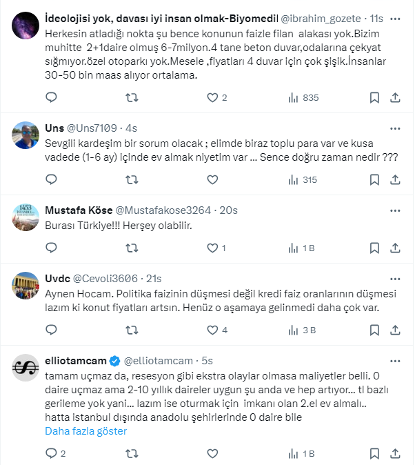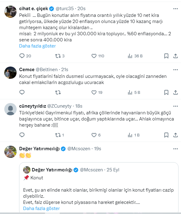 Herkesin atladığı bir nokta var faiz 50'den 45'e düşünce gayrimenkuller uçmaz. 40 'a düşünce de uçmaz. Eğer faiz, beklenti enflasyonunun üzerindeyse yani sıkı para politikası devam ediyorsa faiz cazip kalır.