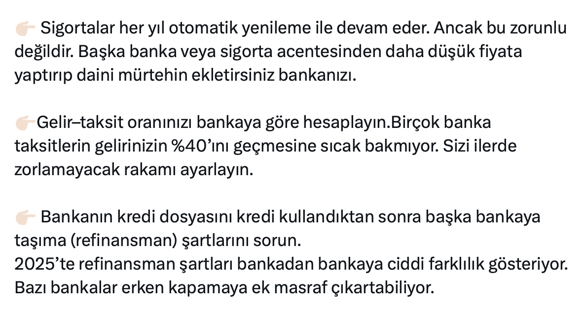 14,1 bin takipçili Bankada Çalışan isimli kullanıcı resmi sosyal medya hesabı üzerinden yaptığı paylaşımda konut kredisi çekerken dikkat edilmesi gerekenleri açıkladı.