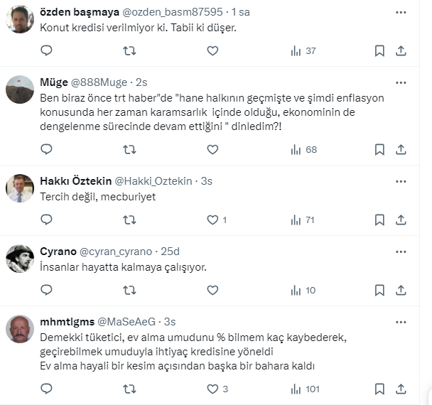 Peki konut kredisi kullanımının azalmasıyla ilgili vatandaş neler söyledi? İşte o paylaşıma gelen yorumlar…