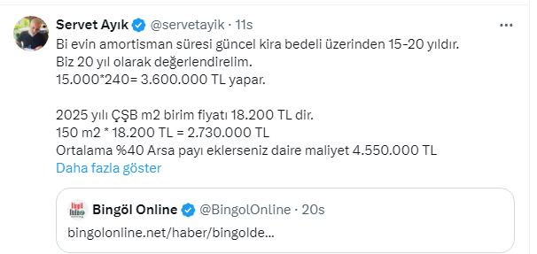 Konut maliyetleri böyle olduğunda kiranın 15 bin tl olması eleştirilecek bi durum değildir, hatta kira bedeli