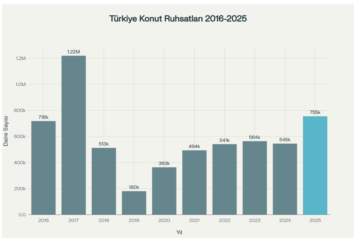 2025'in ilk 9 ayında alınan 755.791 yapı ruhsatı, son 8 yılın zirvesi demek. Siz bugünkü durgunluğa bakarken, piyasa sessizce 2017 ayarlarına dönüyor.