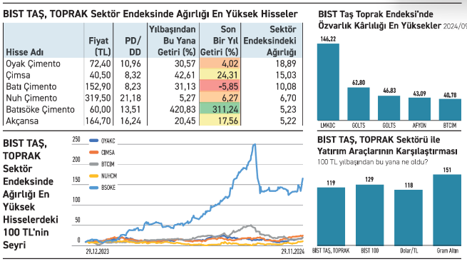 Ekonomim.com yazarı Zeynep Aktaş, BIST Taş Toprak Endeksi’nde 23 hissenin bulunduğunu belirttiği yazısında bunlardan yedisinin yılbaşından bu yana değer kaybettiğini ifade etti. Aktaş, 10 hissenin enflasyonun altında getiri sağlarken 5’inin getirisinin de enflasyonun üzerinde olduğunu söyleyerek, Limak Doğu Anadolu’nun ise Şubat 2024’te borsaya geldiğini hatırlattı.