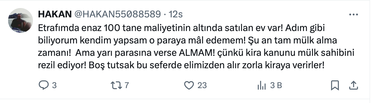 Konut yatırımlarının sık sık gündeme geldiği şu günlerde Analist ve kripto fenomeni Murat Ali Calman da resmi sosyal medya hesabı https://x.com/calmanmuratali üzerinden çok önemli bir paylaşım yaptı.