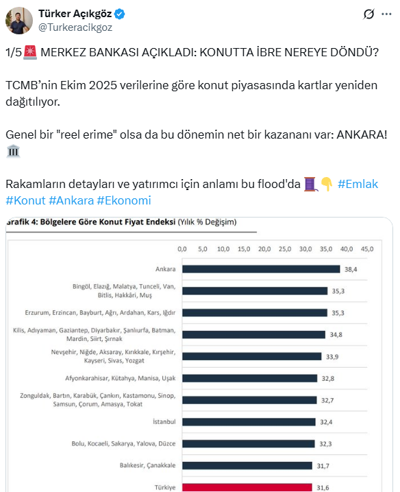 Özetle: Piyasada "köpük" sönüyor, fiyatlar rasyonelleşiyor ama Ankara gibi bölgeler hala direncini koruyor.