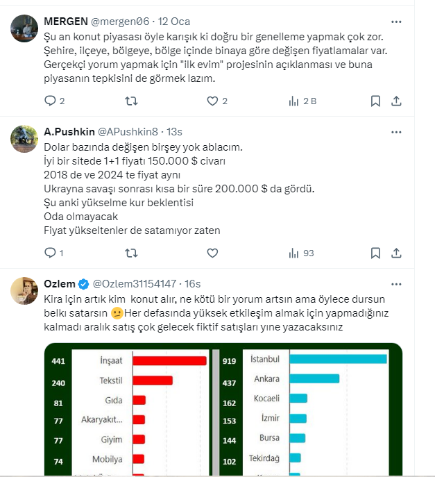 Ne yazık ki parasını vadelide eritenler evini satıp faize koyanlar, kiracıdan canı sıkılıp satanlar ilerde çok üzülecek. Ve beni yakından takip edenler bilir geçen yılın tamamında fırsatlar senesi dedim durdum bir çok insan evini aldı. Hala fiyatı düşecek diye bekleyenler var yazık. Tabi satın alma gücü bitik yine parası olan aldı o ayrı konu maalesef..