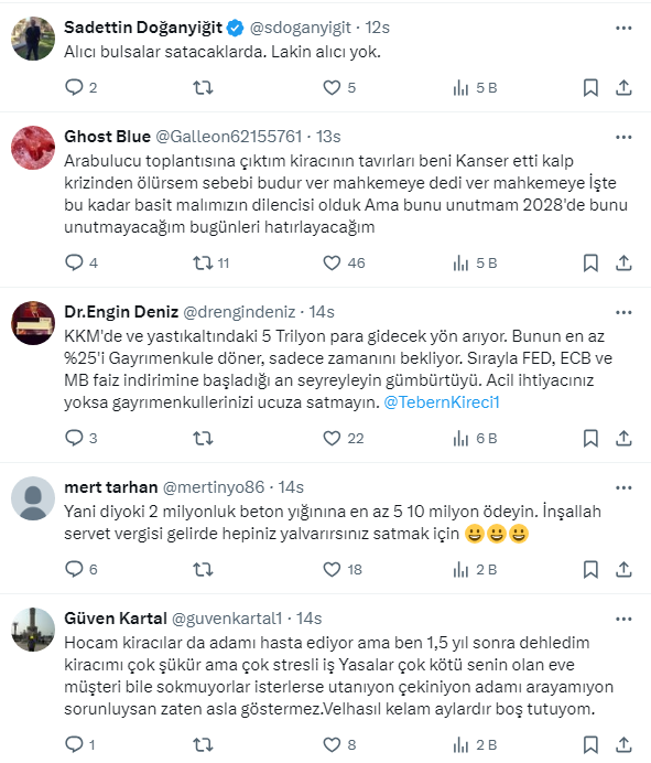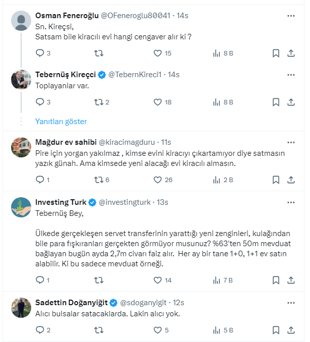 Türkiye İstatistik Kurumu (TÜİK) tarafından açıklanan rakamlara göre Türkiye genelinde konut satışları Mart ayında bir önceki yılın aynı ayına göre yüzde 0,1 azalarak 105 bin 394 oldu. Konut satışlarında mega kent İstanbul 19 bin 40 konut satışı ve yüzde 18,1 ile en yüksek paya sahip oldu. Rakamların açıklanmasının ardından Türkiye'nin 1 numaralı emlak ve konut editörü Tebernüş Kireçci, konuyla ilgili sosyal medyadan, değerlendirme yaptı. Bankaların kredi vermediğnii belirten Kireçci 'bu kadar konutu kim, nasıl alıyor?' diye sordu. Paylaşımının altına ise yüzlerce yorum geldi. İşte o paylaşım ve gelen yorumlar...