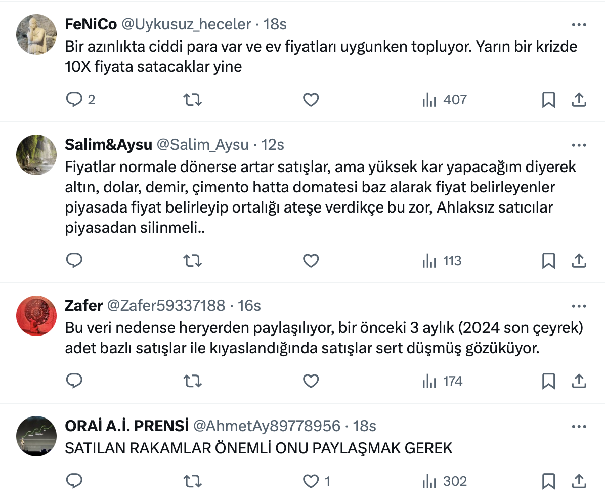 Şehir Plancısı ve Gayrimenkul Değerleme Uzmanı Celal Erdoğdu resmi X hesabı https://twitter.com/CelalErdogdu üzerinden konut satışları ile ilgili bir paylaşım yaptı.