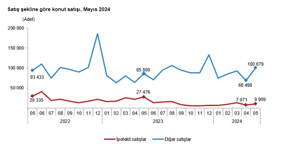 Diğer satış türleri sonucunda ise 100 bin 679 konut el değiştirdi
