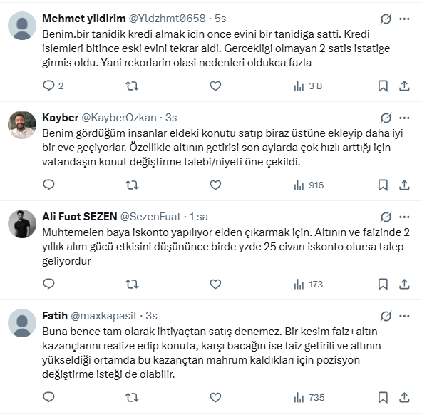 Ekonomist İris Cibre, TÜİK tarafından açıklanan konut satış rakamlarını değerlendirdi. Cibre, verilerle ilgili 'acı sonuç' yorumu yaparak ikinci el konut satışlarının yüzde 69'a ulaştığını söyledi.