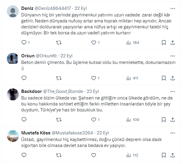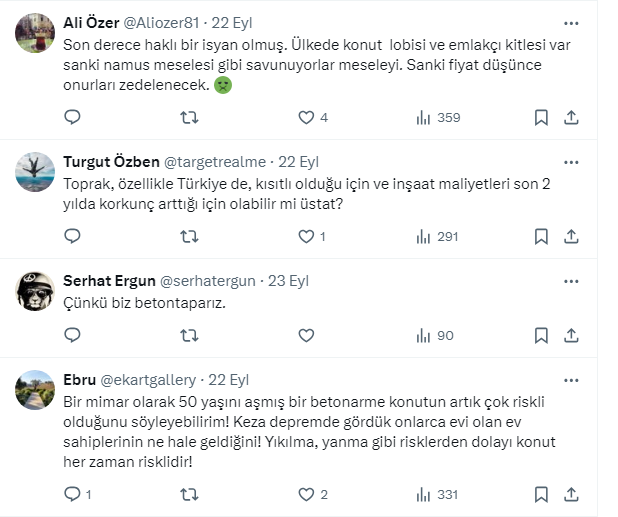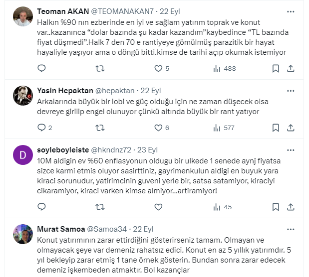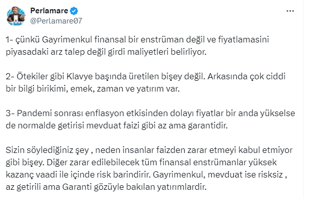 Peki takipçileri konut yatırımında kaybetme riskiyle ilgili neler söyledi? İşte o paylaşıma gelen yorumlar...