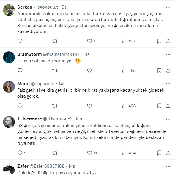Konut fiyatları yükselmeye devam ederken, vatandaş ev sahibi olma hayali kurarken müteahhit de elindeki evlerin satmanın peşinde. Son zamanlarda yüksek konut fiyatlarından dolayı satışlar düştü. Vatandaş konut alamazken, mütehhit ise ilana koyfuğu evi satamıyor. Şehir Plancısı ve Gayrimenkul Değerleme Uzmanı Celal Erdoğdu resmi sosyal medya hesabı üzerinden konutların ilanda ne kadar durduğunu değerlendirdi. Konutların satış sürelerinin uzadığını belirten Erdoğdu; İstanbul, Ankara, İzmir'i ele aldı. Tek tek konutların ilanda kalma sürelerini açıkladı. Sosyal medyadan paylaşıma onlarca yorum geldi. İşte ayrıntılar...