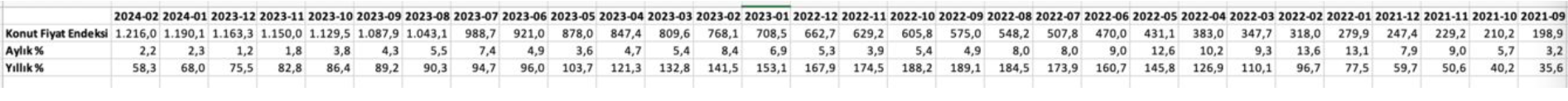 2020 yılının Ocak ayında konut fiyatları yüzde 12.4 ile yüzde 12.1 şeklinde olan yıllık tüketici enflasyonun üzerine çıkmıştı. Aradan 4 sene bir ay geçtikten sonra fiyatlardaki makas yine değişti ve 2024 yılının Şubat ayında konut fiyatları genel enflasyonun altına inmiş oldu.