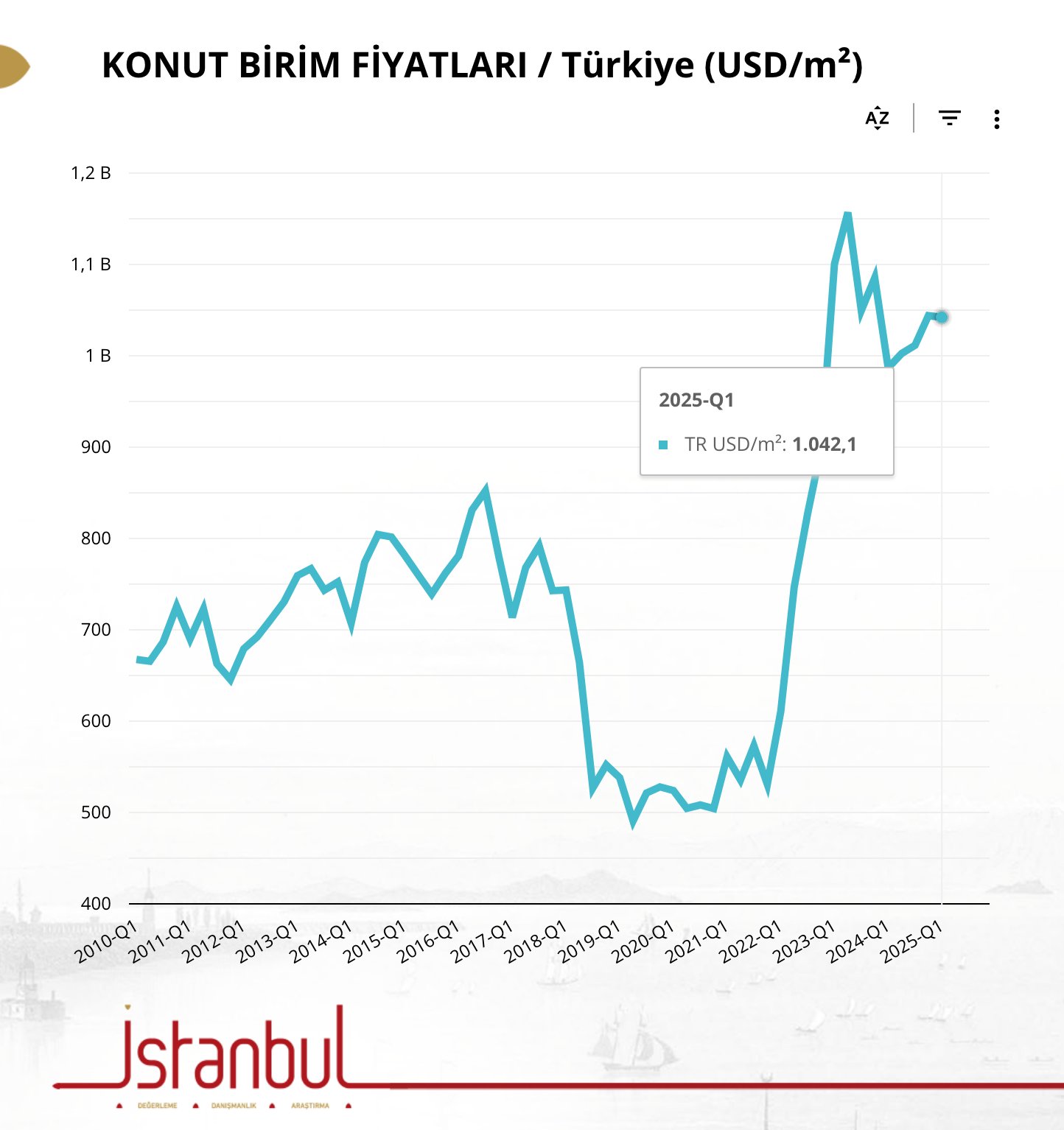 Konut birim fiyatları 1.042 $/m²* oldu.
