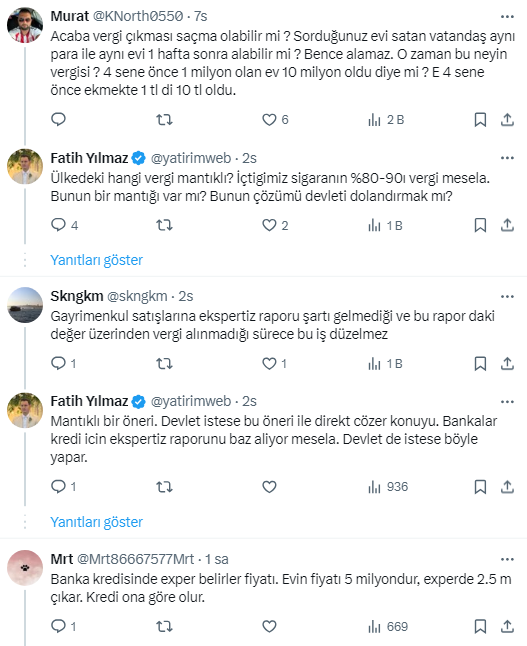 Birkaç tanesine merak edip telefonda polemiğe girdim. Gerçek oranda kredi kullandırtsak o vergiyi ev fiyatına yansıtmak zorunda kalırız, daire fiyatları artar diyor.
