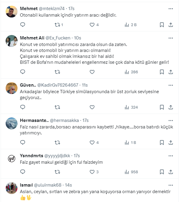 Elinde birikmişi olan yatırımcılar paralarını değerlendirmek için çeşitli yatırım araçlarını tercih ediyor. Kimileri altın, dolar, borsa, otomobil gibi yatırım araçların tercih ederken kimileri, konut ve faizi tercih ediyor.