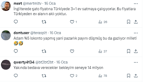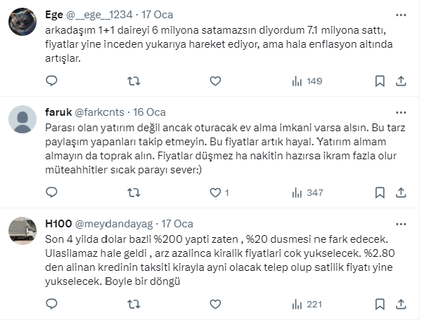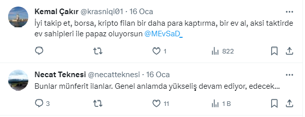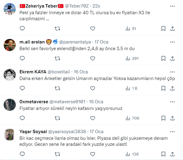 Ev sahibi olmak isteyen herkes “Konut fiyatları düşecek mi artacak mı” sorusunun cevabını merakla beklerken kripto fenomeni Murat Ali Calman X sosyal medya hesabından bir paylaşım yaptı. Konut fiyatlarında düşüş olacağını söyleyen Calman’a bakın vatandaşlar ne dedi?