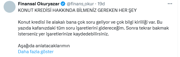 Finansal Okuryazar, sosyal medya hesabı X'ten konut kredisine dair tüm merak edilenleri açıkladı. İşte ayrıntılar...