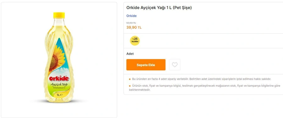 Migros Market'in bu fiyat indirimi, özellikle evde yemek yapmayı tercih eden ve ayçiçek yağı kullanımı sık olan tüketiciler için sevindirici bir gelişme olarak karşılandı. Migros, tüketicilerin bütçelerini rahatlatmak ve günlük ihtiyaçlarını daha uygun fiyatlarla karşılamalarına destek olmak amacıyla bu tarz indirimler düzenlemeye devam ediyor. 1 litrelik Orkide Ayçiçek Yağı'nın yeni fiyatıyla mutfaklarda lezzetli yemekler pişirmek artık daha ekonomik hale geldi.