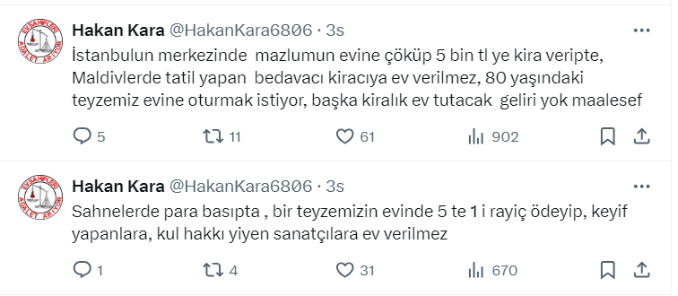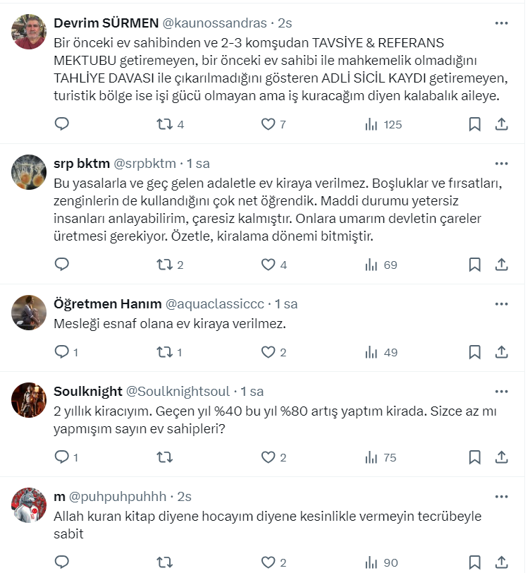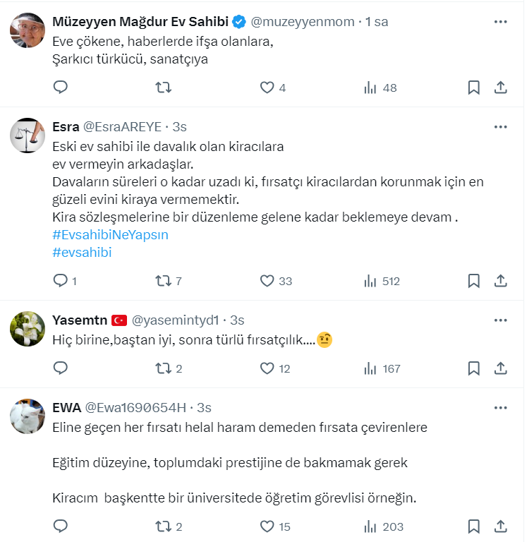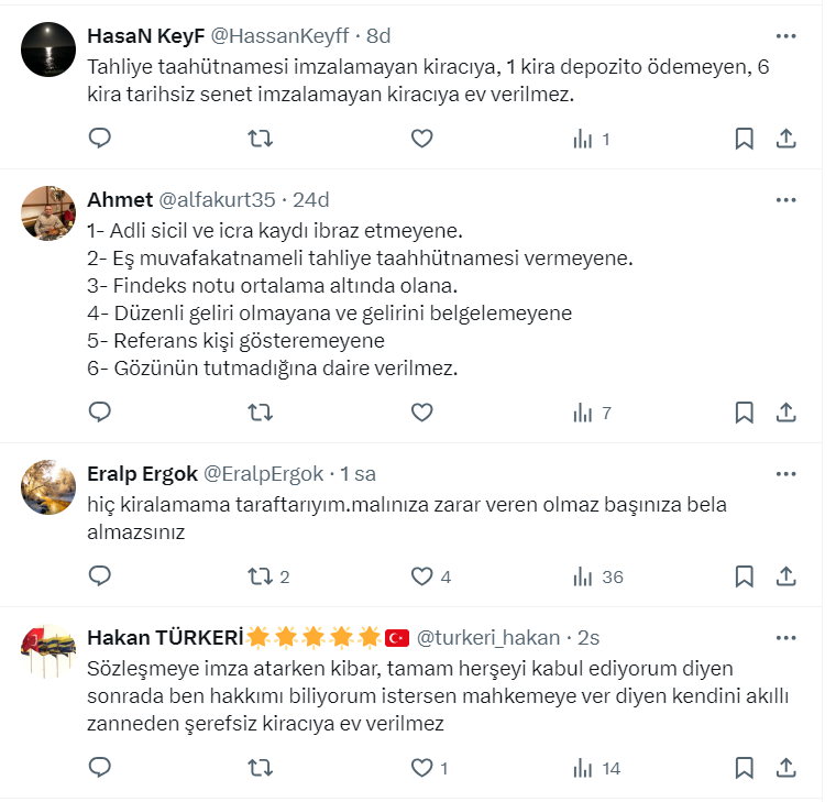 Mağdur ev sahibi Hakan Kara da sosyal medya hesabı https://x.com/HakanKara6806 üzerinden hangi kiracılara ev verilmez diye sordu. Bakın ne yanıtlar geldi...