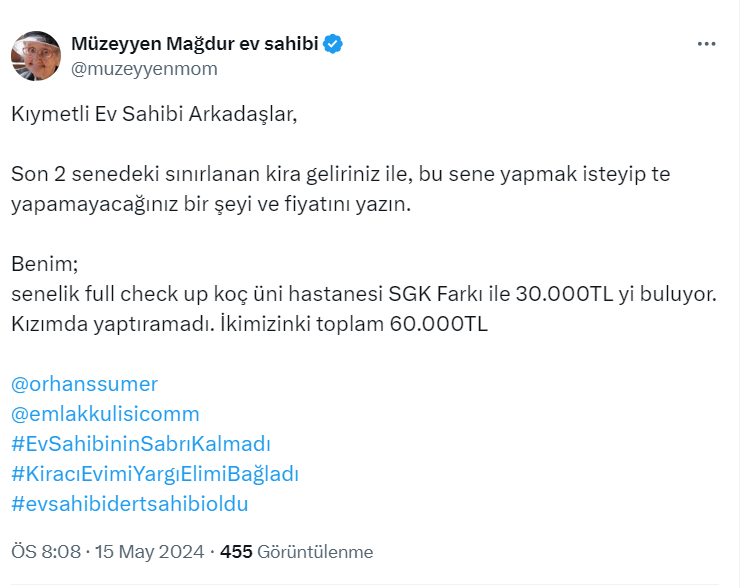Mağdur ev sahibi, 'Sınırlanan kira gelirinizle yapmak isteyip yapamayacağınız bir şey yazın' dedi! Bakın ne yorum geldi!