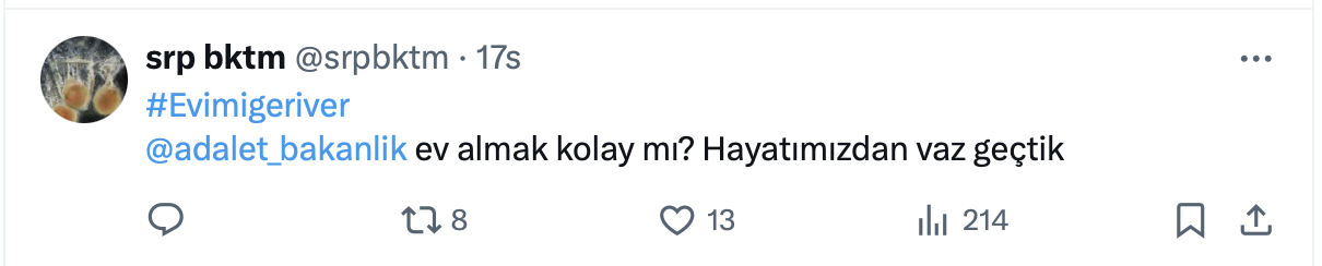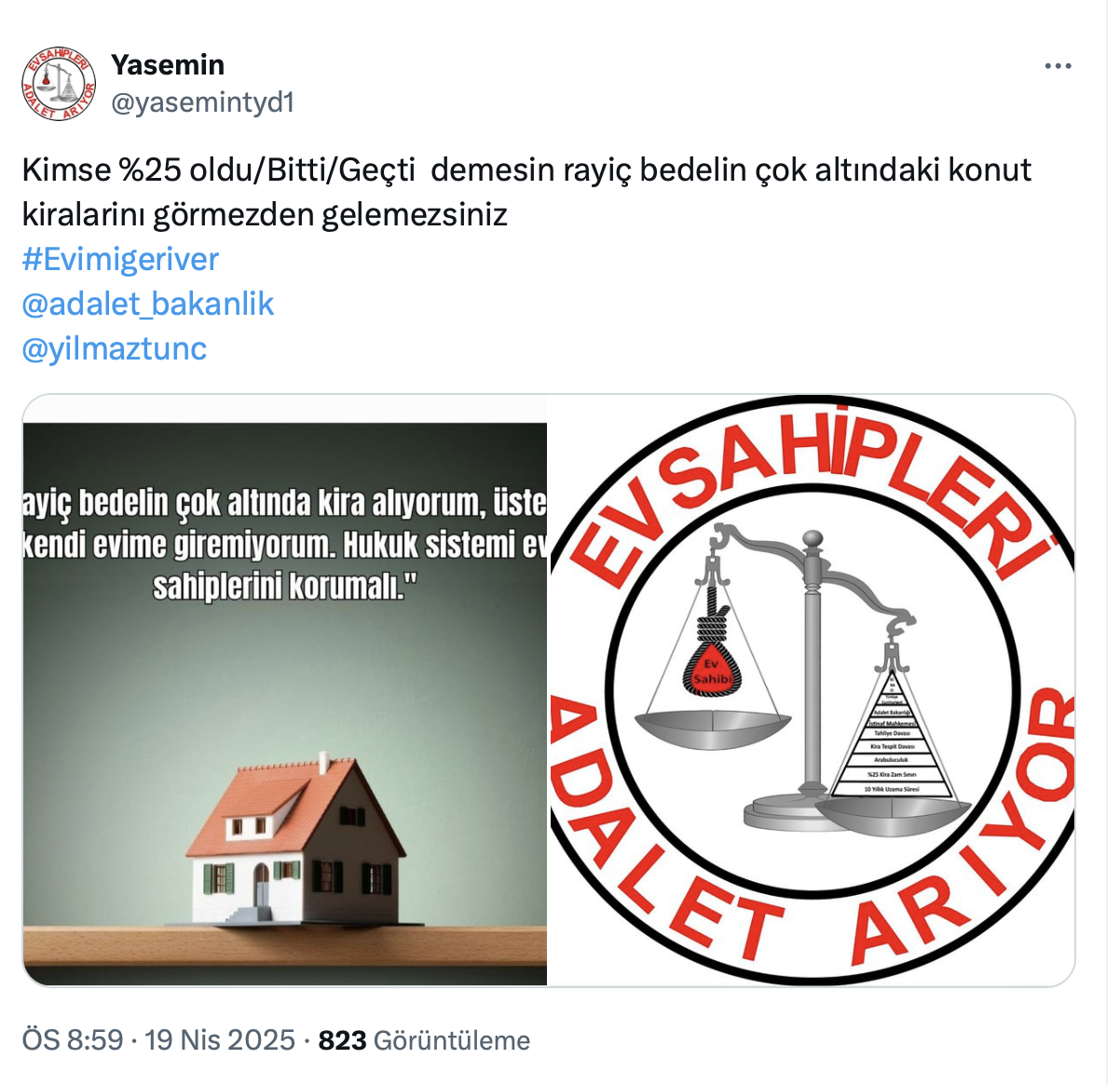 Son olarak mağdur ev sahibi sosyal medya hesabı https://x.com/yasemintyd1 üzerinden yaptığı paylaşımda Adalet Bakanı Yılmaz Tunç’a seslenerek, “Rayiç bedelin çok altındaki konut kiralarını görmezden gelemezsiniz” dedi.