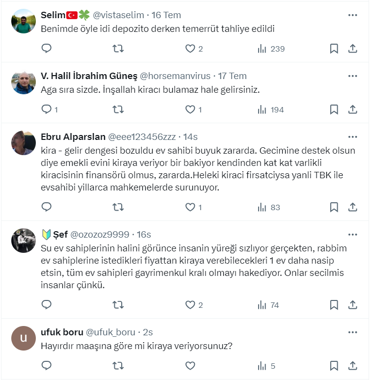 Son iki senenin en çok konuşulan konuları arasında yer alan mülk sahibi ve kiracı kavgaları hız kesmeden devam ederken, hem mal sahipleri hem de kiracılar yaşadıkları sıkıntıları sosyal medya hesaplarından dile getirmeye devam ediyor.