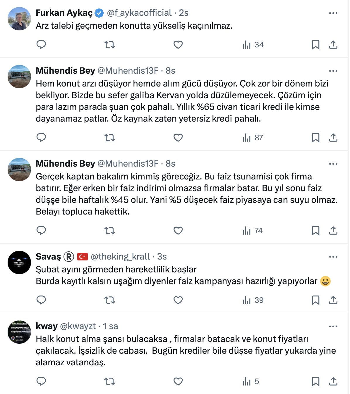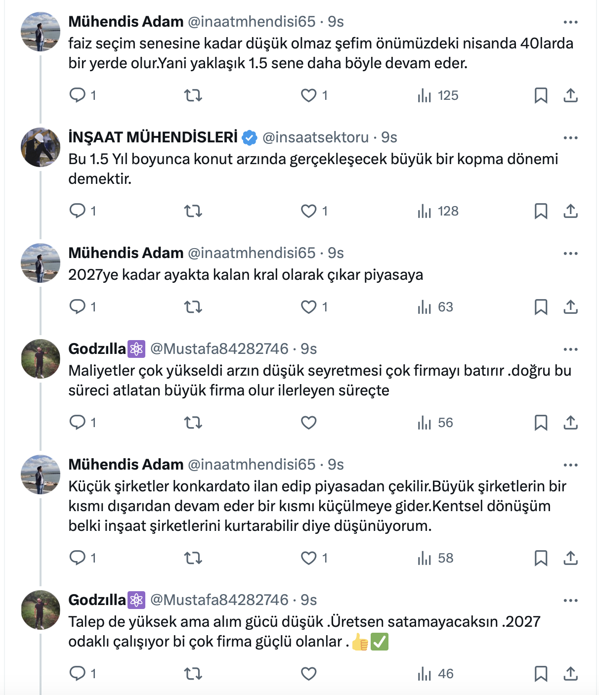 İnşaat Mühendisleri sosyal medya hesabı üzerinden yaptığı paylaşımda Şu an maliyet rakamlarından satılmayan konutların karlılık döneminin bir gün geleceğini söyleyerek, “3 gün mü? 3 ay mı? 3 Yıl mı?” ifadelerini kullandı.
