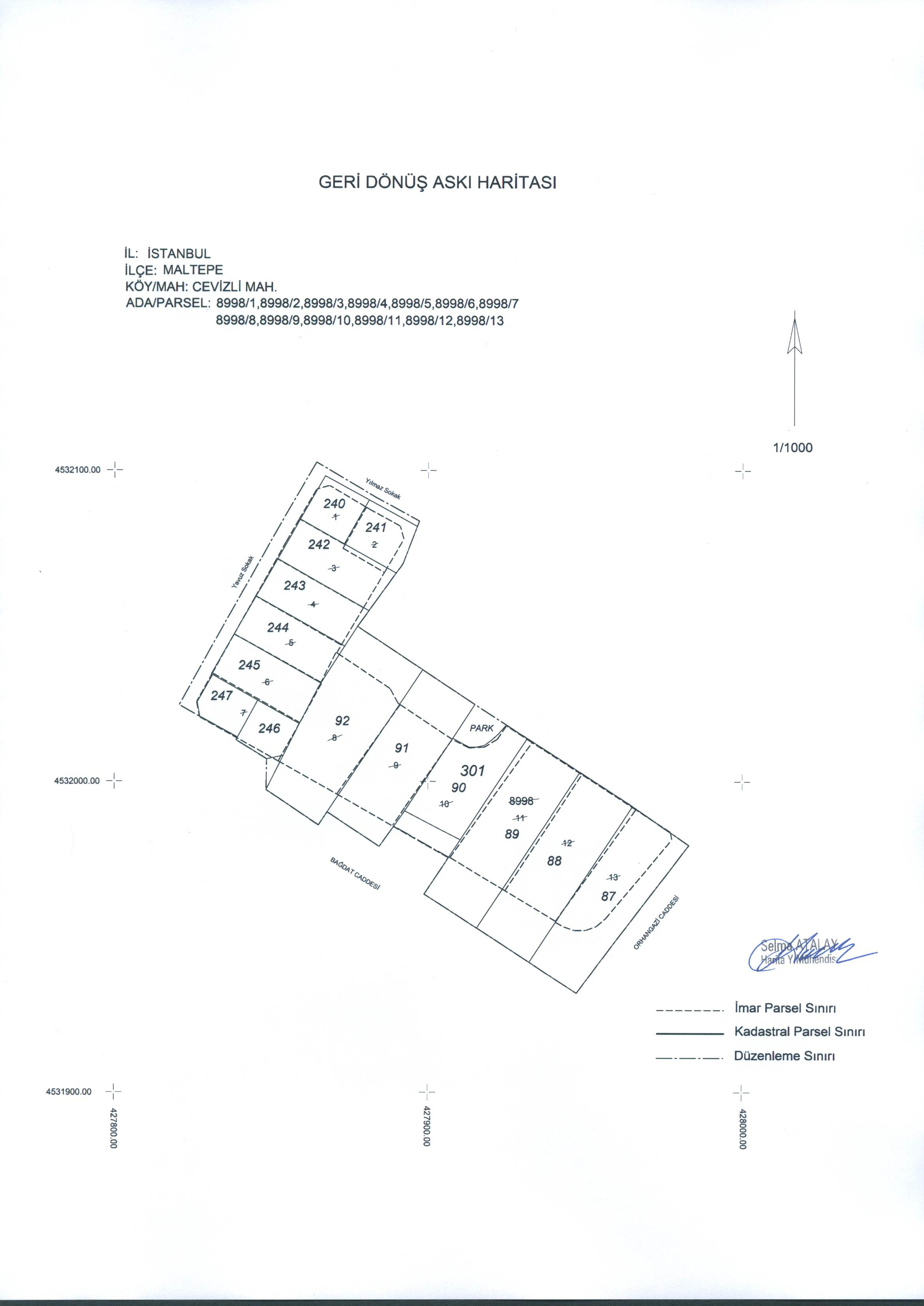 İstanbul'un Maltepe İlçesi'nin Gülsuyu Mahallesi 8998 ada 1-13 parsellerde geri dönüşüm askı haritası askıya çıkarıldı. İstanbul Büyükşehir Belediyesi tarafından askıya çıkarılan parselasyon planı, 28 Nisan'a kadar askıda kalacak...