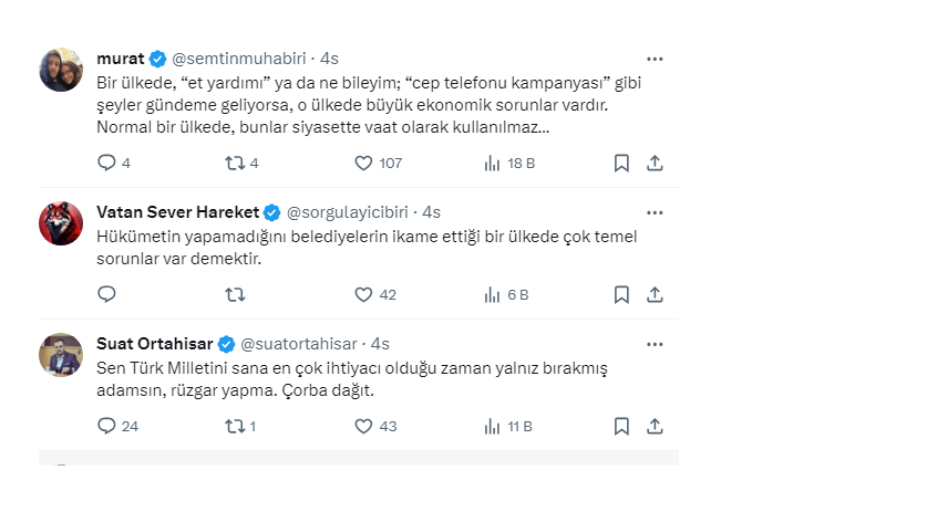 murat @semtinmuhabiri: ''Bir ülkede, “et yardımı” ya da ne bileyim; “cep telefonu kampanyası” gibi şeyler gündeme geliyorsa, o ülkede büyük ekonomik sorunlar vardır. Normal bir ülkede, bunlar siyasette vaat olarak kullanılmaz…''