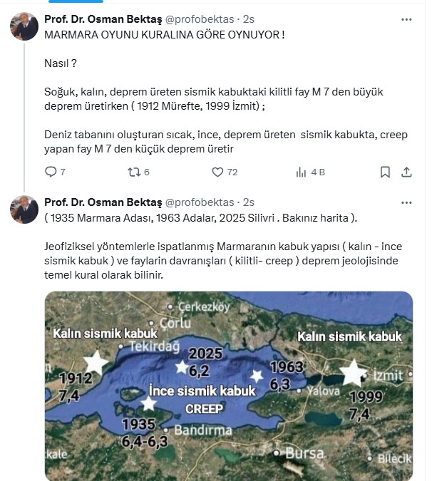 'Marmara oyunu kuralına göre mi oynuyor?' diyen Prof. Dr. Osman Bektaş'tan 7 şiddetinde deprem açıklaması geldi!