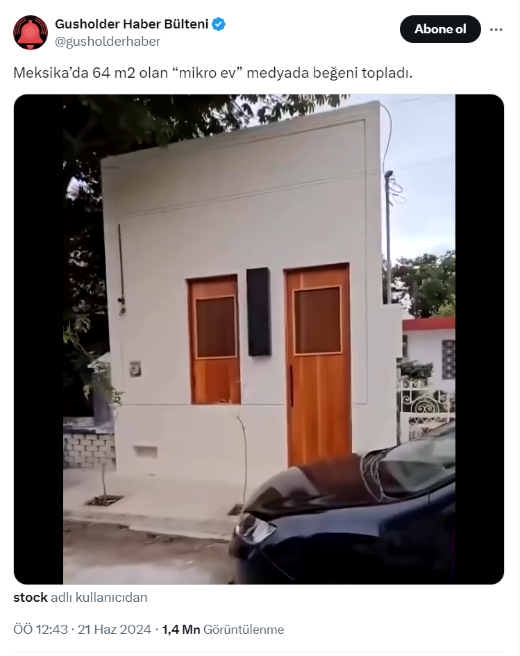 X Sosyal Medya’da 367,8 bin Gusholder Haber Bülteni resmi hesabı https://twitter.com/gusholderhaber üzerinden Meksika’daki 64 metrekarelik mikro evi paylaştı. İşte Gusholder'ın o paylaşımı ve paylaşıma gelen yorumlar...